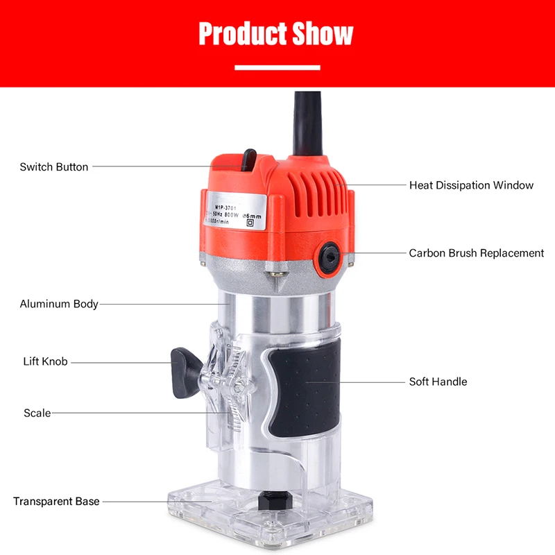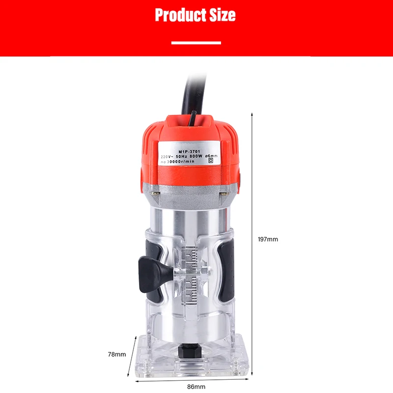 New 220V 800W 30000Rp Woodworking Electric Trimmer Wood Milling Engraving Slotting Trimming Machine Han