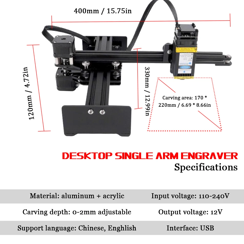 New Arrival Professional 10W CNC Wood Router DIY Laser Engraver Portable Desktop Single Arm Laser Engraving Car